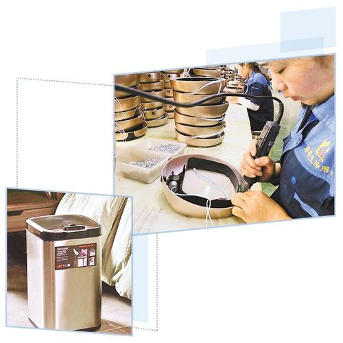 右圖 華萍生活用品公司員工正在加工智能垃圾桶。